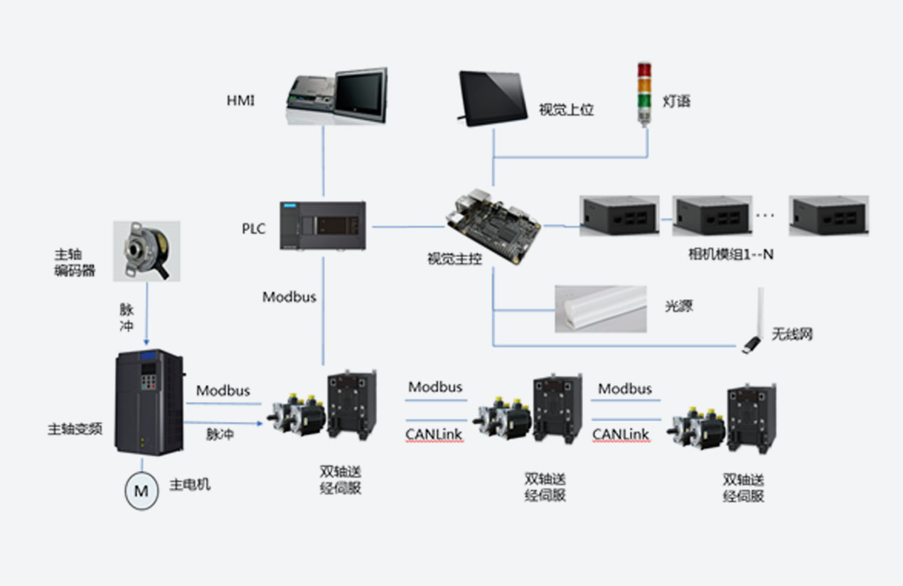 拉幅定型機方案,采用匯川運動型PLC,使用虛主軸+電子分頻方案,同步精度高、響應快。采用MD810多機傳動變頻器,共直流母線排布,同時導入新一代同步機節能算法,整車節能10%以上。定型機物聯網系統,支持遠程調試,故障預診斷;定型機生產管理系統,支持成本核算,智能排序,工藝參數存儲與下發