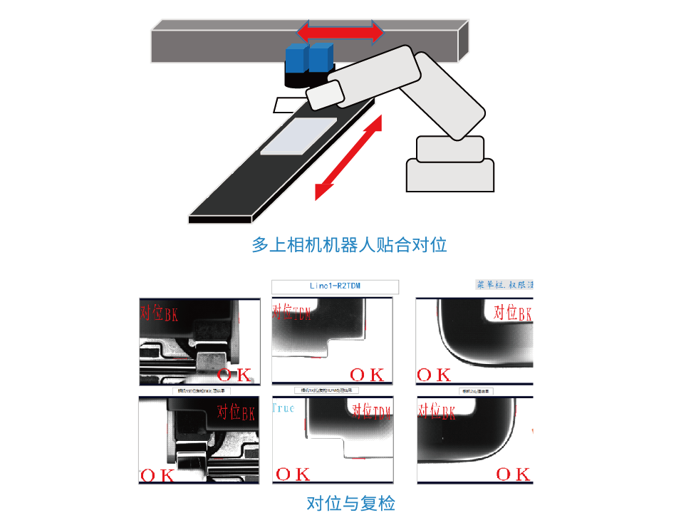 3C生產(chǎn)中執(zhí)行機(jī)構(gòu)種類多,非標(biāo)對(duì)位類型多,對(duì)位誤差難以解耦。我司的Kinovision視覺應(yīng)用平臺(tái)支持多種通訊協(xié)議,支持標(biāo)準(zhǔn)或非標(biāo)執(zhí)行機(jī)構(gòu),包括機(jī)器人、UVW、XYθ模組等,具備腳本編程,具有極大的靈活性于高度的適應(yīng)性。其特有的誤差驗(yàn)證工具和誤差排除標(biāo)準(zhǔn)流程,滿足單平移對(duì)位、單相機(jī)雙工位對(duì)位等非標(biāo)對(duì)位需求,高精度地滿足客戶誤差解耦的需求。